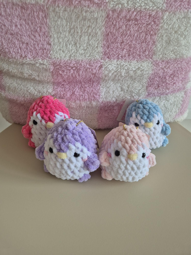 Petites peluches avec chaine à bille d'environ 10cm parfaites pour vous accompagner dans toutes vos aventures.